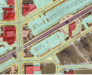 Up-to-date high-resolution orthoimagery is useful for making facility inventories. Because it’s rectified for real-world measurements, the imagery can serve as a tool for engineering-grade measurements. Planimetric mapping provides detailed data of ground features such as access roads, fence lines, building outlines, and monitoring devices.